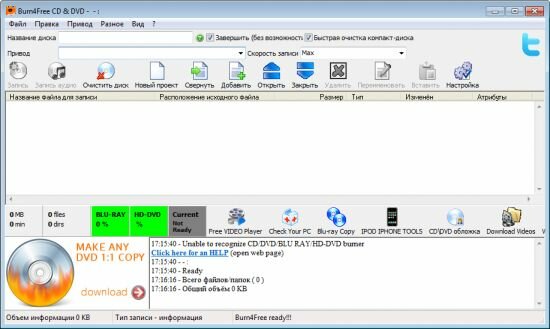 Небольшая, но очень мощная программа для записи на CD и DVD. Возможна запись CD/DVD/BLURAY. В арсенале программы имеется InCD - интегрированная утилита для пакетной записи данных на перезаписываемые носители. Автоматически запускается при старте Windows и обеспечивает быстрый доступ к CD-RW, CD-MRW, DVD+RW/-RW.. Основными преимуществами является бесплатность, поддержка громадного количества пишущих устройств (более 4000).