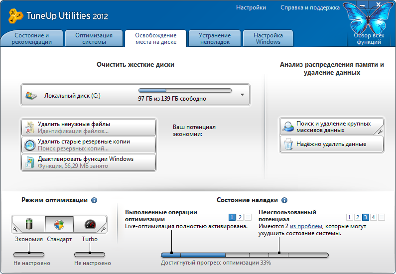 Основные характеристики TuneUp Utilities 2012: